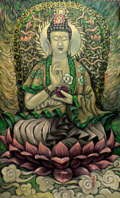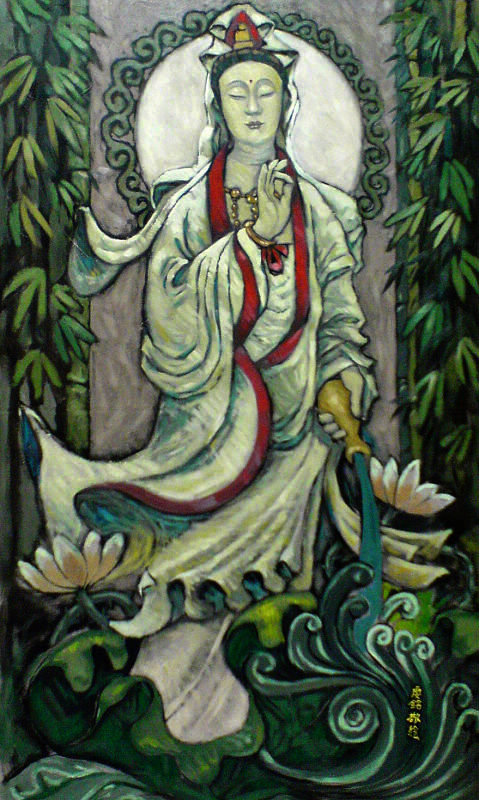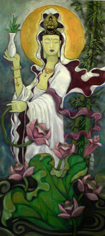 油畫: 藥師佛法像 尺寸: 80 x 130 cm |  油畫: 南無觀世音菩薩法像 尺寸: 72 x 120 cm |  油畫: 南無觀世音菩薩法像 尺寸: 60 x 131 cm |