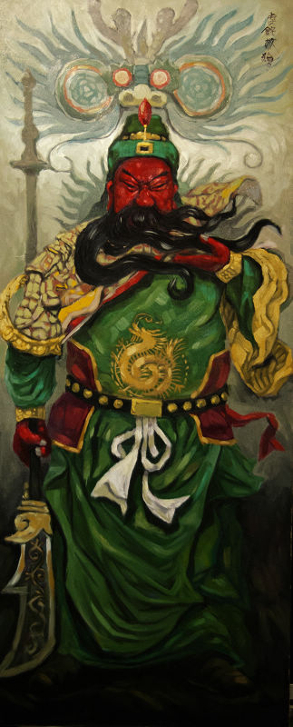 油畫: 關聖帝君法像/恩主公 尺寸: 60 x 144 cm) |  油畫: 觀世音菩薩佛像 尺寸: 8F , 45x38 cm |  油畫: 大佛法像 尺寸: 20F , 72 x 60 cm |