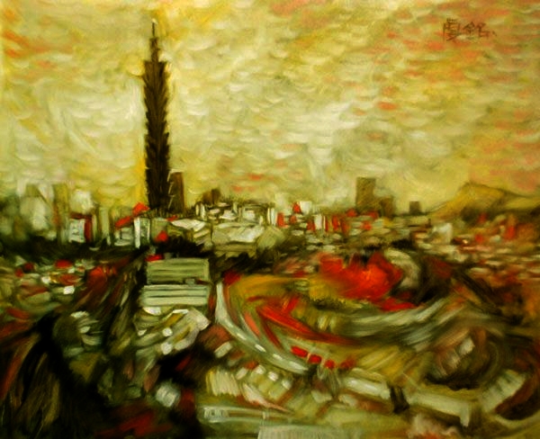 油畫: 玉山山峰 尺寸: 35 x 27 cm |  油畫: 花東峽谷 尺寸: 35 x 27 cm |  油畫: 遠眺101大樓 尺寸: 25F , 80 x 65 cm |