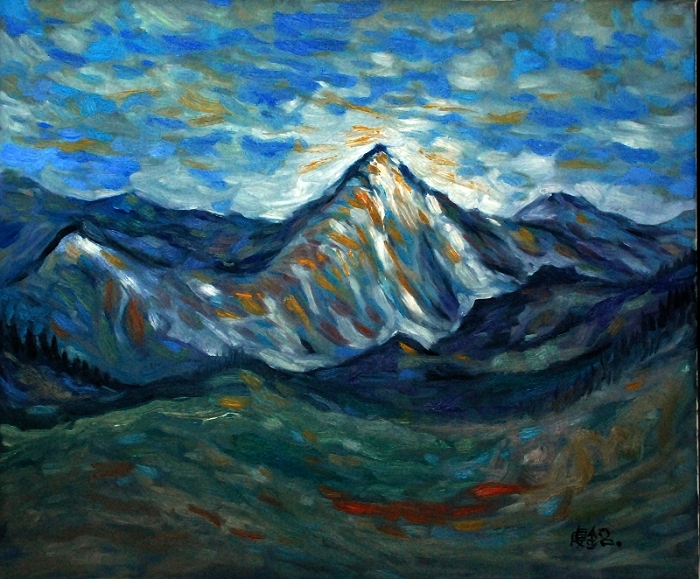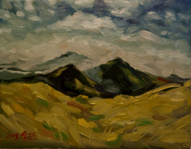 油畫: 玉山山峰 尺寸: 20F , 72 x 60 cm |  油畫: 大屯山 尺寸: 35 x 27 cm |  油畫: 陽明山擎天崗 尺寸: 8F , 45x38 cm |