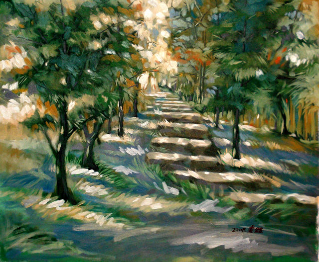 油畫: 鄉村農舍 尺寸: 20F , 72 x 60 cm |  油畫: 步道 尺寸: 20F , 72 x 60 cm |  油畫: 二子坪步道 尺寸: 22 x 26 cm |