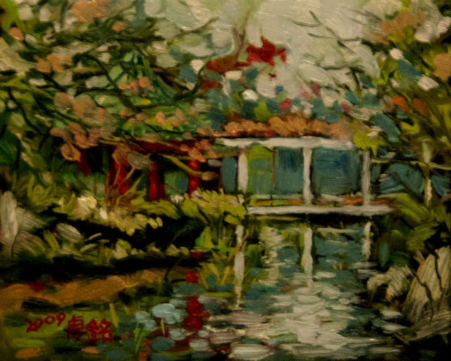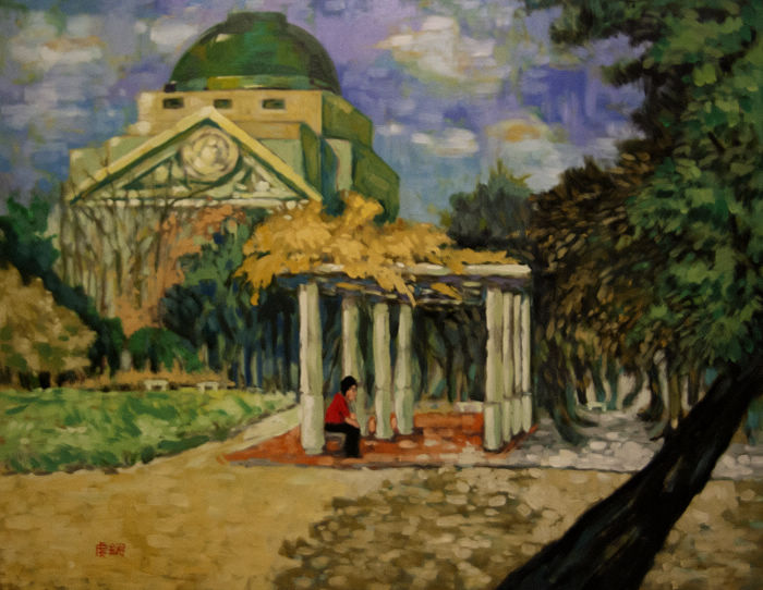 油畫: 植物園池邊 尺寸: 21 x 26 cm |  油畫: 228公園/新公園 尺寸: 50F , 116.5 x 91 cm |  油畫: 北投溫泉博物館 尺寸: 20P , 72 x 53 cm |