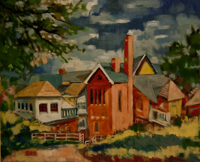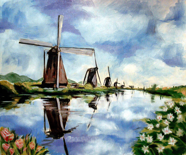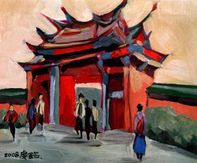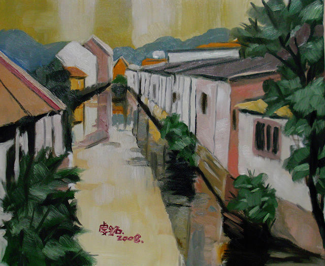 油畫: 行天宮小門 尺寸: 22 x 26 cm |  油畫: 風車 尺寸: 20F , 72 x 60 cm |  油畫: 高山村落 尺寸: 8F , 45x38 cm |