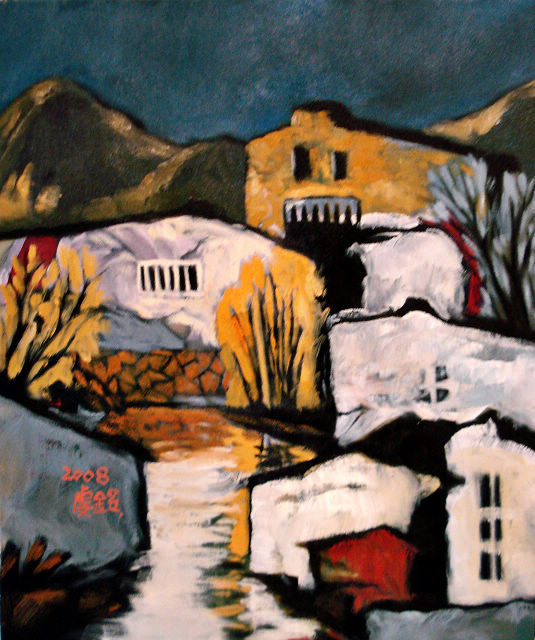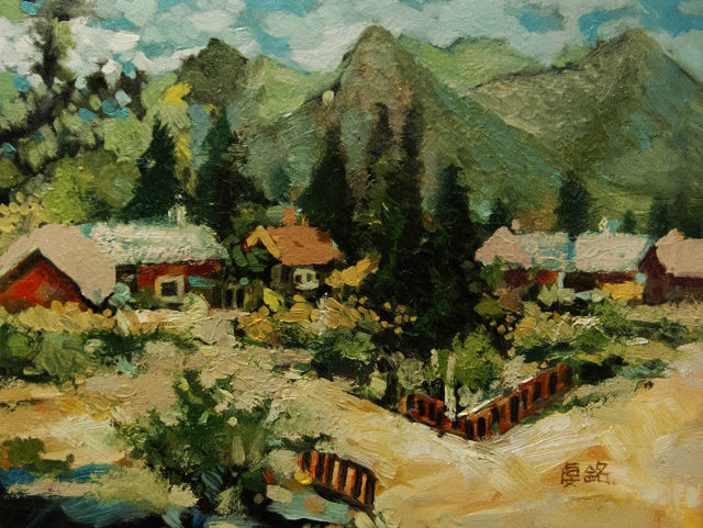 油畫: 山間部落 尺寸: 35 x 27 cm |  油畫: 山間溪流 尺寸: 8F , 45x38 cm |  油畫: 水鄉 尺寸: 8F , 45x38 cm |