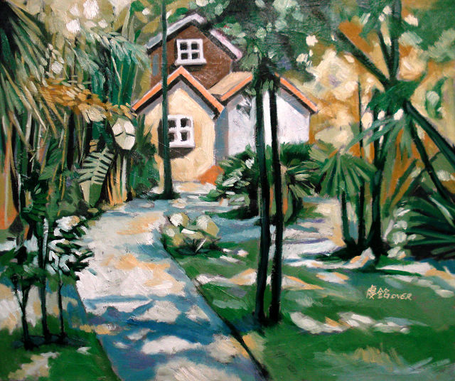 油畫: 紀念館寫生 尺寸: 8F , 45x38 cm |  油畫: 步道 尺寸: 20F , 72 x 60 cm |  油畫: 士林官邸 尺寸: 8F , 45x38 cm |
