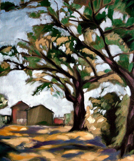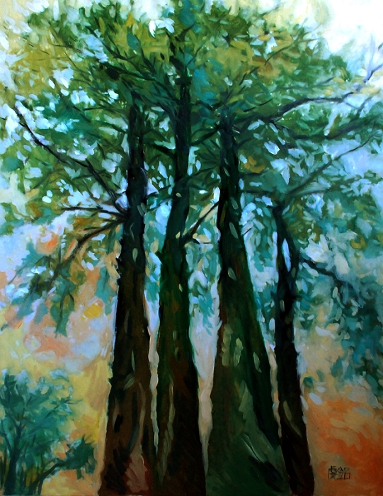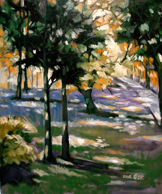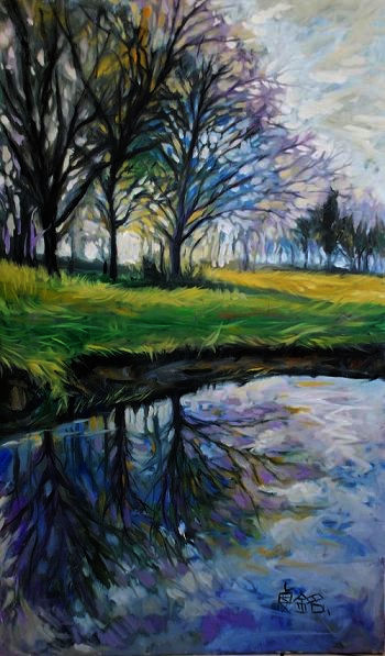 油畫: 4顆大樹 尺寸: 50F , 116.5 x 91 cm |  油畫: 水邊倒影 尺寸: 72 x 120 cm |