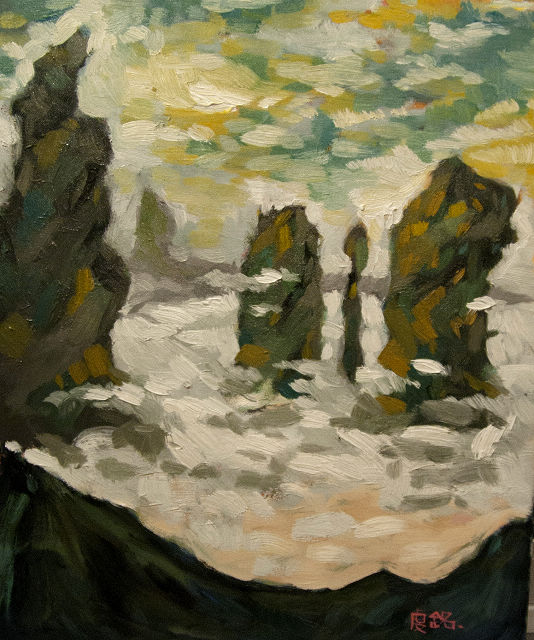 油畫: 後巷小溪 尺寸: 8F , 45x38 cm |  油畫: 樹蔭 尺寸: 8F , 45x38 cm |  油畫: 雲海 尺寸: 8F , 45x38 cm |