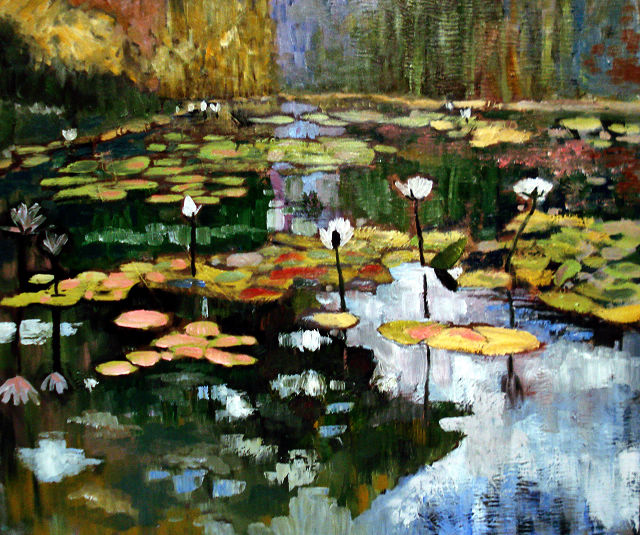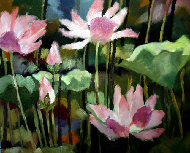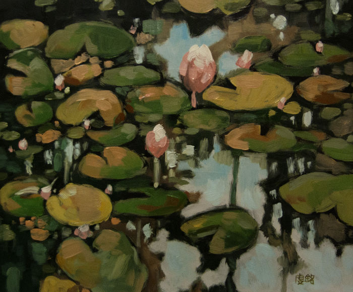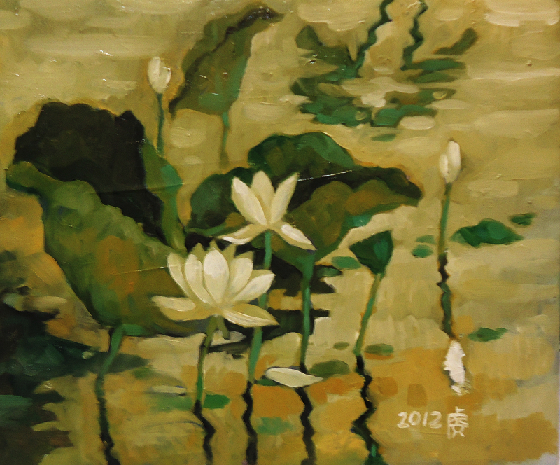 油畫: 荷花水影 尺寸: 8F , 45x38 cm |  油畫: 荷花倒影 尺寸: 8F , 45x38 cm |  油畫: 荷花圖 尺寸: 8F , 45x38 cm |