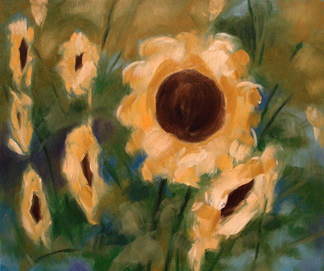 油畫: 向日葵 尺寸: 8F , 45x38 cm |  油畫: 蓮花池 尺寸: 8F , 45x38 cm |  油畫: 蓮花 尺寸: 20F , 72 x 60 cm |