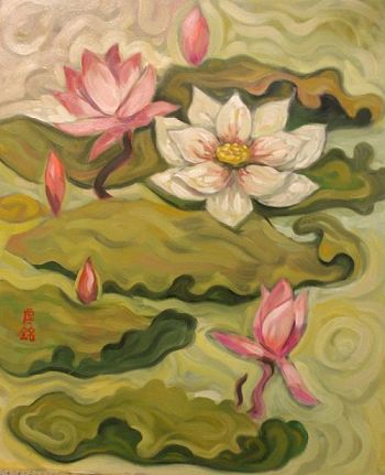 油畫: 荷花 尺寸: 20F , 72 x 60 cm |